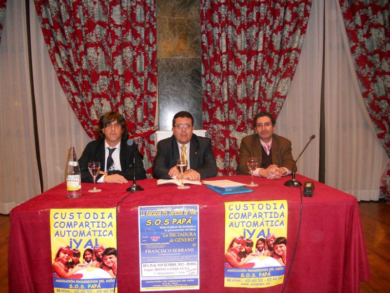 A pesar de los boicots de algunas instituciones locales y la prensa en León ,el efecto fué totalmente contrario,no hubo sitio y el aforo se quedó pequeño.Acompañaron a Serrano el abogado Fernando García y el presidente de SOS PAPÁ en León Juan Carlos Presa.Serrano con su habitual maestría fue detallando paso a paso los efectos y perversiones de la dictadura e ideología de género de esta España del siglo XXI.Psicólogos,policias,asistentes sociales,médicos ,jueces, fiscales,profesores de enseñanza y gente de otras profesiones vieron claramente el engaño que se está cometiendo día tras día en todos los medios de comunicación que tras una apariencia de verdad absoluta no les importa mentir con tal de seguir manteniendo el negocio que se econde de la ideología de género.Los datos de nuncias falsas detallados en la sala eran abrumadoramente escandalosos.Se sigue jugando con el dinero de miles de ciudadanos que se están quedando hasta sin vivienda,eso si, para mantener el negocio del maltrato, aparte de vulnerar los derechos fundamentales de esta asociación y negar la información a la gente, se quiere continuar con el chollo sin importarles el sufrimiento de mujeres realmente maltratadas y de hombres maltratados a los que se deja sin hijos y en la ruina.