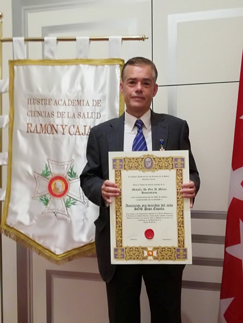 La Asociación Pro Derechos del Niño S.O.S PAPÁ-España ha sido galardonada por la Academia de Ciencias de la Salud “Ramon y Cajal” con la MEDALLA DE ORO AL MÉRITO HUMANITARIO.