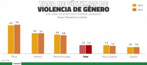 Según el último estudio disponible de la FRA-Agencia de los Derechos Fundamentales de la Unión Europea, de 2014, que pregunta a las mujeres si han sufrido violencia física o sexual, los países miembros que encabezan la lista por número de casos son Dinamarca (52%), Finlandia (47%), Suecia (46%) y Francia y Reino Unido, con un 44%. Porcentualmente, España tiene uno de los más bajos: el 22%.