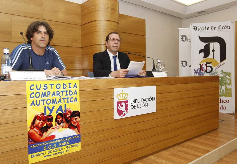 Francisco Fernández Cabanillas, profesor de la Universidad de Castilla-La Mancha, Licenciado en CC. Económicas y DEA y en Derecho, pronunció ayer una conferencia en el Club de Prensa de Diario de León, organizada por la Asociación Pro Derechos del Niño S.O.S PAPÁ-León y presentada por Juan Carlos Presa (Presidente de la Asociación Pro Derechos del Niño S.O.S PAPÁ-León).